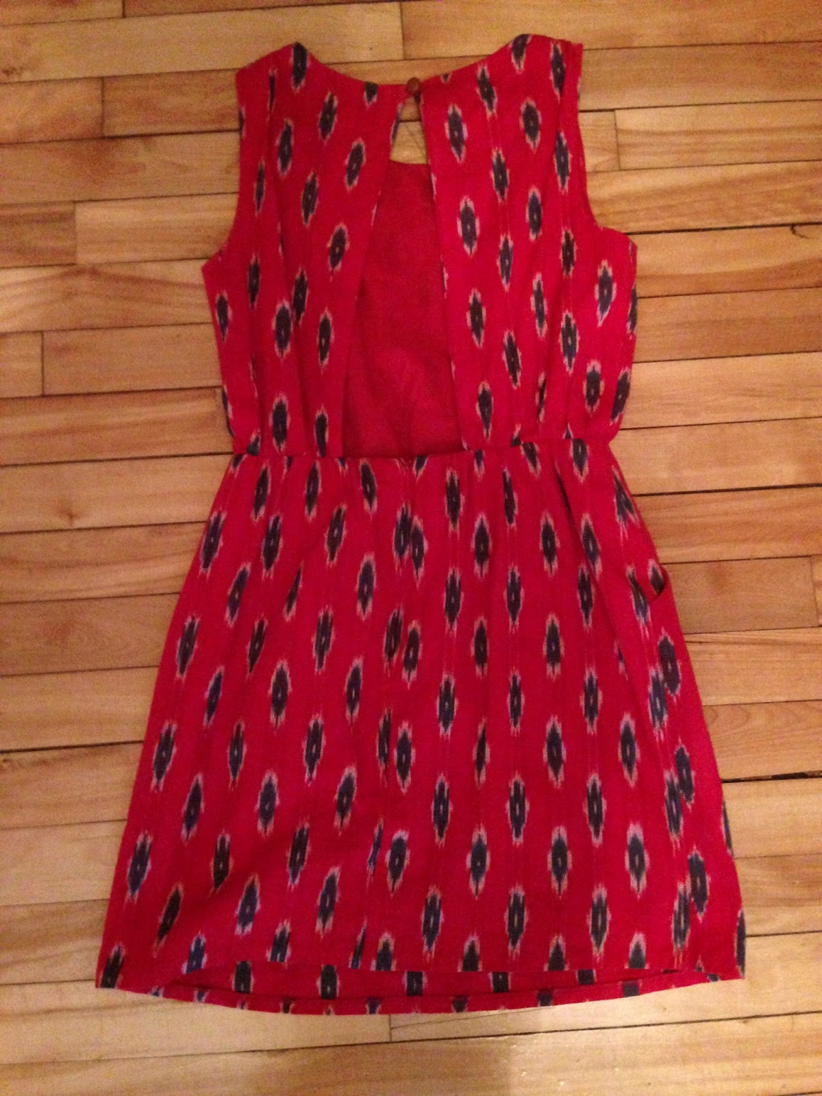 Selling a like new Steven Alan dress in a beautiful handwoven ikat madras fabric. Unfortunately the cut doesn't flatter my body shape so my loss is your gain. Features round neck, backless with hidden zipper, and with pockets!