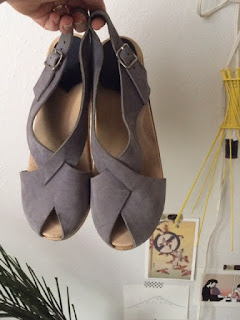 Grey, nubuck leather Sandgrens clogs, purchased last year. This color is no longer available on their website. Wood and soles are still in great condition. Size 40 - I'm a US 8.5, with a wide foot, and these were slightly tight on me.